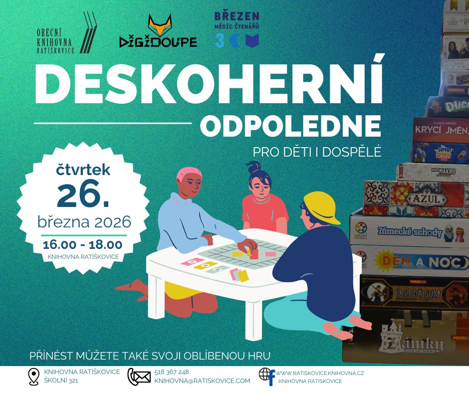 Knihovna Ratíškovice od srpna rozšiřuje nabídku služeb čtenářům o e-výpůjčky audioknih. Výpůjčky e-audioknih fungují na stejném způsobu jako e-knihy. Čtenář si může vypůjčit 3 e-audioknihy na 31 dnů, výpůjčku nelze předčasně vrátit. Výpůjčky e-knih i e-audiknih jsou pro čtenáře zdarma.
